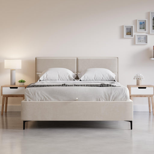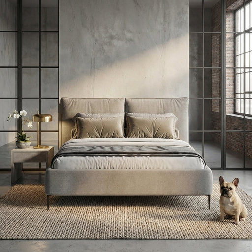 אספקה מיידית שלם וקח ! 🚚 מראה עשיר ומרהיב לחדר השינה שלך. בד יוקרתי ורחיץ . גב המיטה בעל נוכחות כובשת עם עיצוב מעניין. בסיס המיטה עשוי מתכת מגולוונ...