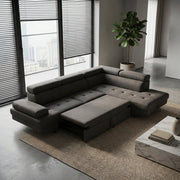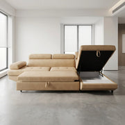 ספת אירוח אופנתית ומרהיבה בעיצוב אירופאי נפתחת למיטה זוגית פרקטית.