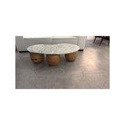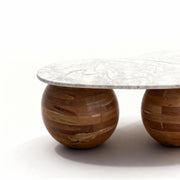 שולחן שיש אמיתי ובסיס רגליים מעץ מלזי מלא